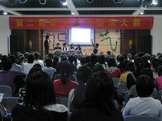 此次才艺展示大赛形式多样,内容丰富,各系同学积极参加,热情演出,活动中心人潮涌动,座无虚席。歌曲、戏剧、小品、魔术等12个节目表演轮番登场。台上选手卖力的演出博来观众的阵阵掌声,我系同学参加的小品《应聘》、《天堂地狱大比拼》凭其大胆前卫的台词,夸张到位的表演,更是将比赛推向一个又一个高潮,台下掌声迭起。我系和国贸系同学联合演出的歌曲串烧《听是谁在唱歌》压轴登场,并获得优胜奖。