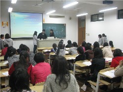根据学院深化学风建设要求,2010年11月11日晚上6点半, 财务会计系会计班和投理班利用晚自修的时间组织了一次主题为“导航引领,共话学风”的活动。各班积极筹备组织了一系列的节目,邀请了系学生会各部长和班助担任评委。