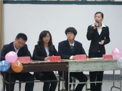 2010年12月1日中午12点15分,我系在1#105举办第四届“新生杯”辩论赛最后一场冠亚争夺赛。工商管理系学生会主席陈洁、应用工程系团总支副书记缪倩云等同学作为嘉宾出席此次辩论赛。