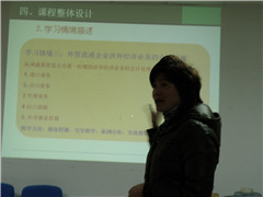 五位老师分别讲述了《纳税实务》、《涉外业务核算》、《保险实务》、《信用担保》、《个人理财规划》课程的整体设计。评审小组对五位教师做了中肯的点评,提出了改进意见和建议。冯江涛老师认为,课程设计要做到严谨、规范,课程的基本信息、课程地位与作用、课程整体设计、教学方法、教学基本条件、考核方案、教学效果七个方面内容要充实。参加本次职业能力测评的十四位教师纷纷表示要更进一步进行课程改革,在职业能力培训过程中提高自身教学水平,改进教学手段。
