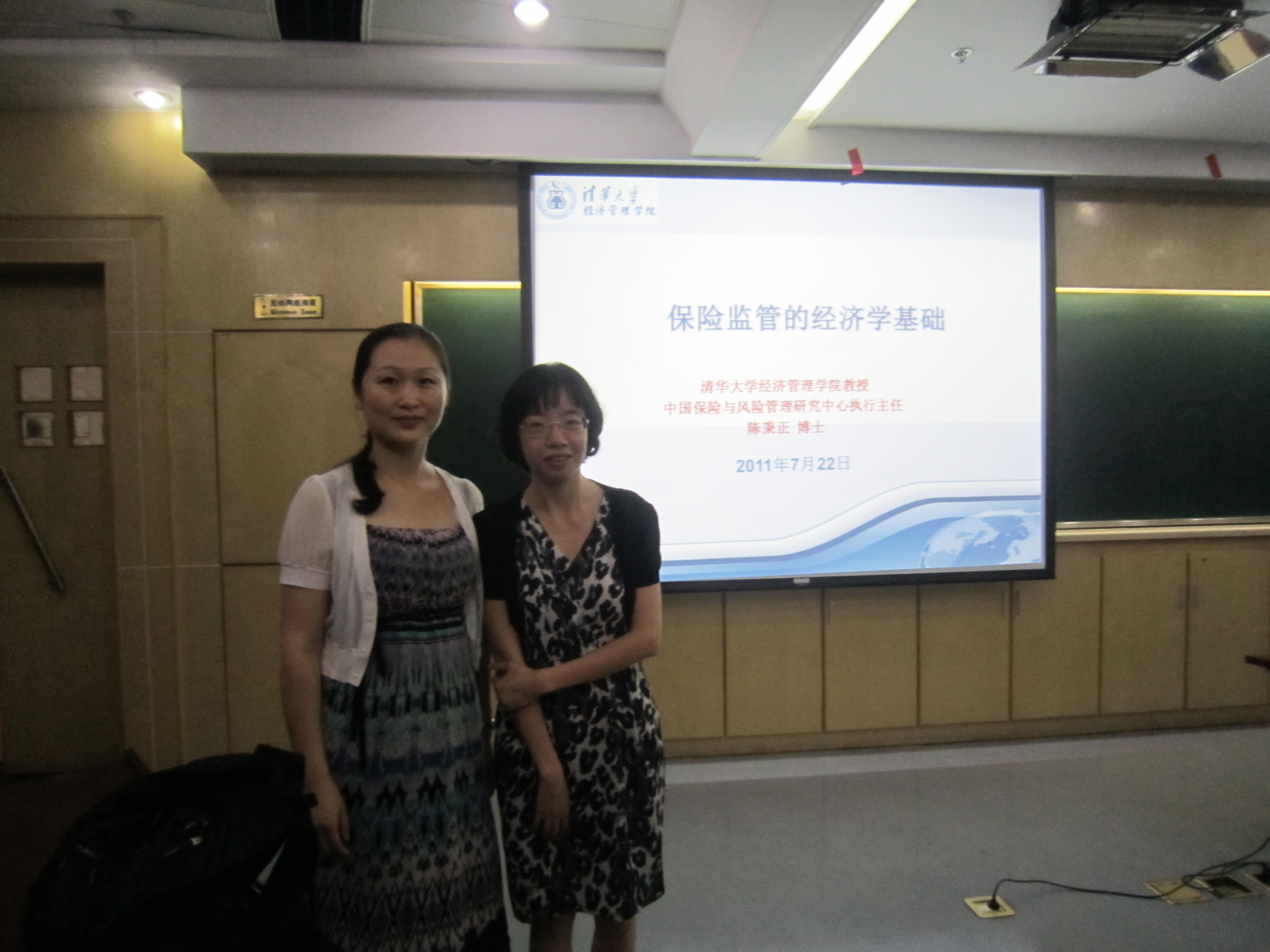 2011年7月22日,我系金融保险专业陈颖瑛、朱丽莎老师赴北京参加清华大学管理学院中国保险与风险管理研究中心(CCIRM)主办的清华大学暑期保险研修班。本次研修班的主题是“保险监管经济学”。本次研修班主题鲜明、内容丰富、充分考虑到进修教师及保险界实务工作人员的需求。从研修内容来看,既有学者对监管经济学基础理论的回顾与归纳,又有政府官员结合市场实际对保险市场发展、监管与国际规则的分析,还有国外学者对保险研究和市场监管的定量分析,对于青年学者来说,最有收益的是如何撰写一流学术论文以及向国际知名期刊投稿的方法和技巧。