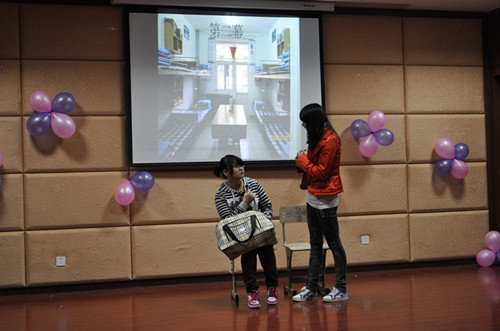 在热情洋溢的健美操表演之后,比赛正式开始。以友谊为主题的“朋友”、幽默的剧情为观众带来阵阵欢笑。三场精彩表演过后,投理111班为大家带来《小沈阳与灰太狼》的精彩表演,连贯紧凑、趣味横生的故事情节博得了大家热烈掌声,在剧中同学们把灰太狼、红太郎等角色阐释得惟妙惟肖。最后为大家带来的是以亲情为主线的情景剧《只因为爱》,让大家认识到母爱与父爱的伟大。