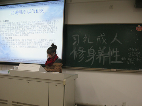 各班事先对诚信周的活动进行了充分的准备工作,活动内容各具特色。会计111班同学以“保成绩,倡良好学风”为主题,提出了对期末考试是否已经准备好了的疑问;会计112班同学就各国对于考试作弊的惩罚力度,以美国斯坦福大学荣誉行为准则展开了激烈的讨论。会计113班通过播放风趣幽默的小品与同学们分享了快乐。此外,金融保险112班的同学也以哈佛大学为例进行了探讨。会计114班同学阅读了《大学生诚信守则》,同学们一致认可了“以诚相待,以信相交”的观念。信管111班同学观看了有关作弊的视频,相信在笑声之后同学们对于是否应该作弊这件事会有所认识。税务112班的同学们还郑重做了诚信考试的承诺。其余各班则开展了丰富多彩的游戏活动。