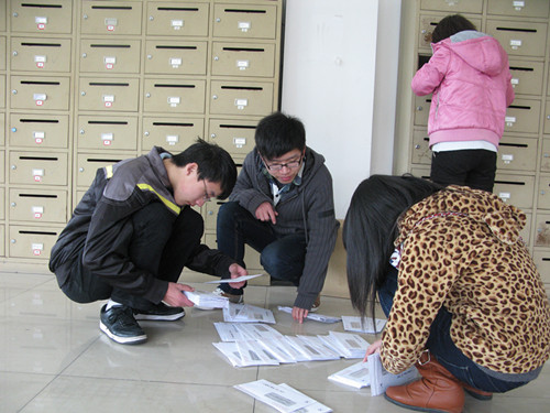 为积极响应我系“倡响春之声,践行公益路”学习雷锋主题月活动,2012年3月15日下午,我系青协成员在2号教学楼开始了“温情送信,服务同学——我为信儿找主人”的活动。