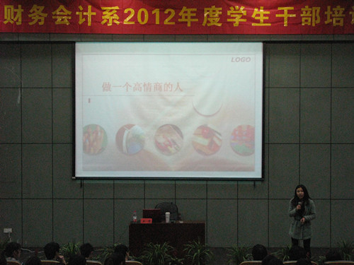 首先,王芳老师提出情商在学生干部工作中起到很大的作用,并解释情商的含义,通过从职场、婚姻、亲子等角度说明情商在不同情况的体现和作用,强调了情商的重要性,它是处理人际关系的关键。接着,她就如何提高情商,给同学们提出了几点建议。在自我评价环节,王老师通过对“粘液质”、“多血质”等不同类型气质的分析,使同学们正确认识自我,定位自我。最后,王老师通过讲解案例,说明男性和女性在处理情绪方面的有效手段,在场的同学也积极发言。会上,王老师还列举了许多提升人际交流的有效方法,使同学们受益匪浅,在同学们热烈的掌声中王老师结束了本次的培训课程。
