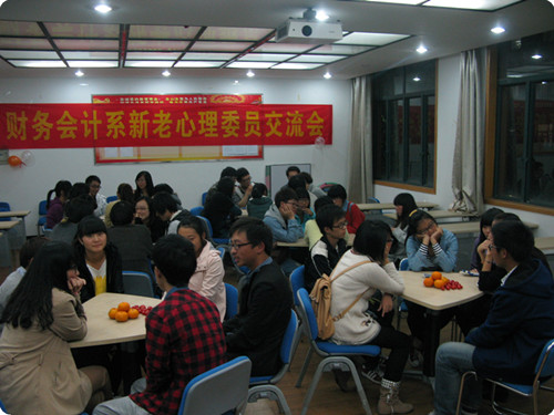 2012年11月5日晚6点,财务会计系新老心理委员交流会于在4号楼207教室举行。周全老师、心理部部长黄丽娜出席,2011级和2012级心理委员参加。