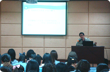 阵阵热烈的掌声,句句精妙的阐述,这里是第四届记者节“笔走锋芒引新意,博闻强识显主旨”记者培训讲座的现场。2013年4月25日下午2点40分,我系记者节活动之一记者及新闻稿培训讲座在学生活动中心举行。此次讲座很荣幸邀请我院人文旅游系何刚晴老师担任主讲,我系新闻中心成员及各班新闻爱好者到场聆听。