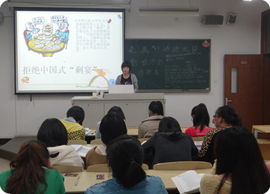 班会中,各班班长通过PPT介绍了“光盘行动”的涵义和由来,加强同学们对“光盘行动”的认识。投理122班把“非洲饥民”与“中国式剩宴”进行对比,直观说明了“光盘行动”重要性。部分班级还播放相关视频,使得现场气氛更加热烈。学生纷纷表示积极参与到行动中来,争做节约达人。