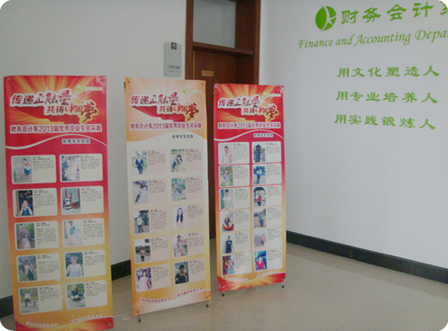 为宣扬优秀学生事迹,发挥榜样效应,我系特制作13块2013届优秀毕业生展架,本次风采展主要包括了32位优秀学生党员、16位优秀学生干部,20位励志之星,17位省级优秀学生干部,41为校级优秀学生,所有展板都在毕业生返校期间展出。在此我系预祝所有的毕业生能够在以后的日子里一帆风顺,前程万里。