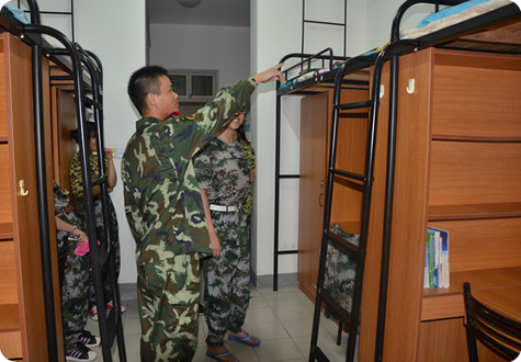 进入宿舍后,教官首先对学生的宿舍情况进行了总体的评价,按照军训标准,对宿舍物品的摆放、内务的整理提出了要求。随后,教官亲自上阵,向大家实际演示了军人标准的内务整理,同学们不禁对严格的军队内务制度发出了敬佩的感慨。