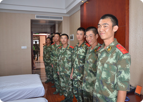 在二营营长的带领下,各位老师以及学生代表参观了教官寝室,教官们干净、整洁的寝室给人留下了深刻的印象。随后王老师与营长、教官们进行亲切的交谈,对教官几天来的辛苦付出表示感谢,并希望教官能严格要求学生,使新生们能深刻领会地军人风骨,培养那种顽强拼博的品格;营长和各排排长表示在接下去的训练中一定会更加负责的规范军训要求,保证高质量、高标准完成学校的军训任务,绝不辜负系领导的期望。