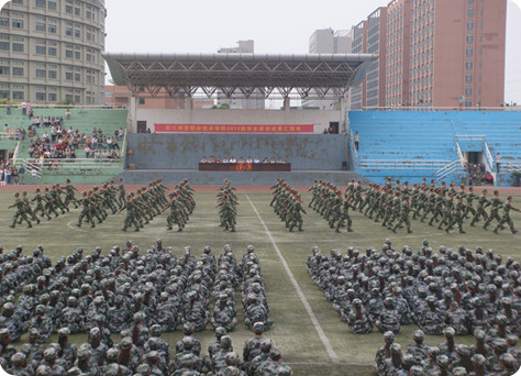 9月20日,学院2013级学生军训成果汇报大会在田径场隆重举行。学院党政领导童学敏、李曙明、周文根、卢显林、张红、蒋丽君,承训单位武警杭州士官学校副校长叶向阳等领导出席大会。3000余名新生身着戎装,精神饱满,列队整齐,接受大会的检阅。大会由军训团政委、学院学生处处长许兴苗主持。