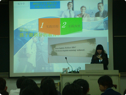 除了团队之外,会计123班刘丹萍同学对暑期电影院工作进行汇报,她认为,在社会中磨练自己,接触不一样的人才是真正的实践。会计128班陈灵巧同学讲述了暑期在环球语言中心的工作经历,实践让她学习到更多的沟通技巧。投理121班张伊同学在暑期开展了支教活动,与小朋友们一起剪纸、一起画画、一起游戏等。