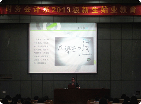 2013年11月12日下午1点30分,我系2013级新生始业教育之“大学·路·梦想”主题讲座在图书馆报告厅举行。此次讲座的主讲人是湖州市诗词学会会员、市作家协会会员朱炜老师,同时,朱炜老师也是我校人文旅游系2011届校友。出席此次讲座的有系党总支副书记王春青老师、系团总支书记兼总辅导员夏欢老师及全体辅导员老师。