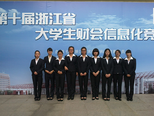 2013年11月9日,由解媚霞老师带队参加了“浙江省第十届财会信息化大赛”决赛,我系共有六组学生参加决赛,经过师生共同努力,创下了一等奖一组,二等奖两组,三等奖两组的优异成绩。