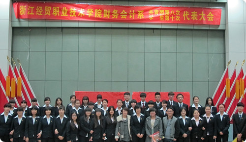 2013年11月26日下午,财务会计系团总支第八届、学生第十届学生代表大会在图书馆报告厅举行。出席此次大会的嘉宾有财务会计系主任兼党总支书记潘上永老师,学院团委书记方俊老师,各系团总支书记,兄弟院校嘉宾代表、我系辅导员和参会学生代表。