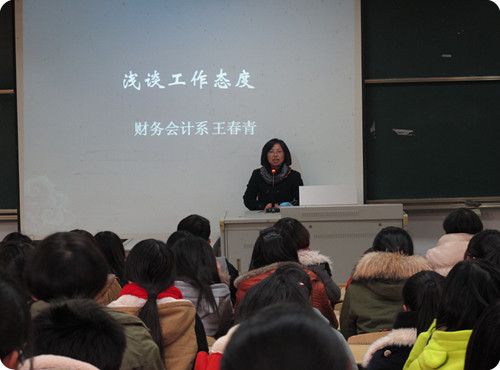 2013年12月10日下午2点20,财务会计系在1号楼101举行了2013年学生干部培训班开班典礼。出席本次开班典礼的有系党总支副书记王春青老师,系团总支书记兼总辅导员夏欢老师,系辅导员陈琴老师,许菁老师,张译尹老师和张刚老师。培训学员包括了财务会计系团总支学生会新任职干部及13级、12级各班班委。