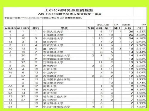 其中584名财务负责人披露了毕业院校类的信息,一共涉及289所国内外高等院校。我院与国内外众多名校齐名,是我省唯一上榜高职院校。