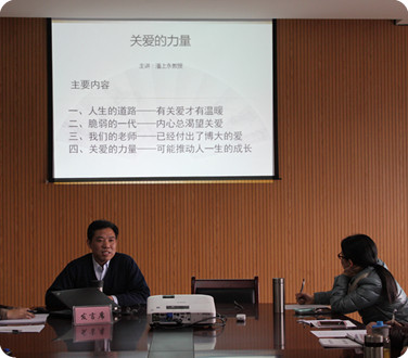 最后,潘上永教授做了题为《关爱的力量》的专题发言,潘教授首先对全体班主任在教书育人方面所做的努力和奉献给予了充分的肯定,并从班主任的工作要求出发,提出“人生的道路有关爱才有温暖、脆弱的一代内心渴望关爱、关爱的力量可能推动人一生的成长”等几个方面。他运用海子、李开复的故事等大量鲜活的例子,启发在座老师,要重视关心下一代,为学生排忧解难,用爱和责任帮助下一代健康成长,将思想政治教育体现在对学生的具体关怀之中。精彩的发言赢得了在场老师们的热烈掌声。