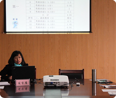 夏欢老师介绍了班主任考核细则及津贴奖金分配方案。王春青老师汇报2013年度学生工作考核结果,详细介绍了各项考核项目的得分情况,并指出了目前我系学生工作中存在的主要问题,提出解决方案。