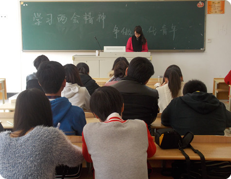 2014年3月11日中午12点30分,我系在4#203召开“关注两会,争做时代青年”的学生干部交流会。系学生会副主席周倩、学习部部长黄丽丽、文案部部长季奕虹及大一各班班长、学委参加此次会议。