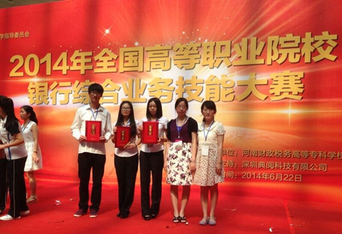 2014年6月22日,财务会计系陈颖瑛、胡璐老师领队参加了在郑州举行的“2014年全国高等职业院校银行技能竞赛”。本次赛事由全国金融职业教学委员会主办,是目前国内最高级别的大学生银行技能竞赛,本次大赛共有全国74所高职院校的200多名学生选手参加。