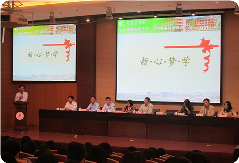10月14日下午,秋风送爽,阳光明媚,财务会计系2014年新生开学典礼在学院会议中心二楼隆重举行。学院副院长卢显林老师,系主任潘上永教授,系党总支副书记王春青老师,系副主任张会莉老师,系副主任李国辉老师,各专业教研室主任、系全体行政人员、2014级班主任和2014级全体新生参加了开学典礼。系总辅导员夏欢老师主持典礼。