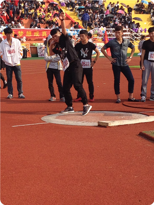 运动健儿们英姿飒爽,奋力一掷,在空中留下一道优美的弧线的同时也在地上印上了自己的好成绩。虽然天气炎热,但依旧阻挡不住全校同学的热情,加油声在耳边荡漾。最后,会计二队的郑斌同学在铅球比赛中取得了第一的优秀成绩,为我系争得了荣誉。