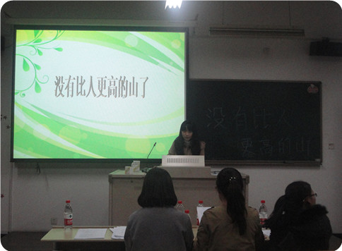 为了让同学们明确自身目标,坚定自身信念,我系于11月20日在4号楼512教室举办了主题为“没有比人更高的山”的演讲比赛。我系14级新生参加了此次活动。
