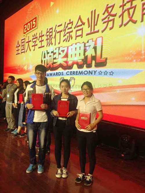 2015年10月13日,由财务会计系陈颖瑛、胡璐老师带队,我系三名学生参加了在江苏淮安举行的“2015年全国大学生银行技能竞赛”。本次赛事由全国金融职业教学委员会主办,是目前国内最高级别的大学生银行技能竞赛,大赛吸引来自全国106所高职院校的300多名学生选手参加。