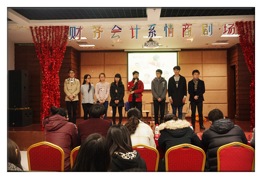 情商剧场是财会系情商教育的品牌活动,每次的剧本主要以自我了解、自我管理、自我激励、识别他人情绪和处理人际关系为主题,以情景剧的演绎形式引导同学们运用“情绪ABC”理论,积极探讨产生矛盾的原因及解决途径,从而增强情商教育的趣味性、系统性,提升情商水平。本期情商剧主要讲述了一个大学生在外做兼职被骗的经历,到场同学还根据剧情分小组进行了热烈的讨论,大家各抒己见、表达了对主人公以及各自遭遇的看法。此外,情商剧场还准备了其他有趣的环节,如普及心理学小知识的心理知识小讲堂,如了解同学们内心世界的心理小测试活动。
