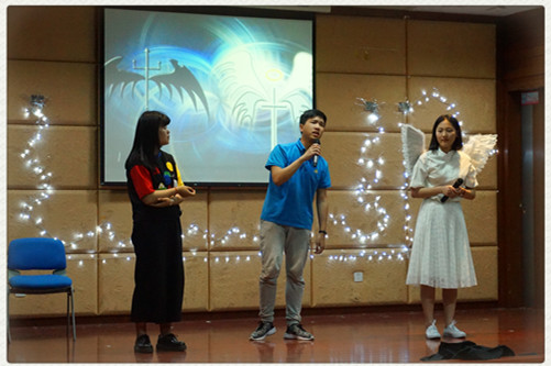 活动在一段极富特色的舞蹈中拉开了序幕,本期情商剧讲述的是一个小偷受伤、在送往医院后不治而亡的故事。在小偷死后,天使和恶魔出现了,他们不停地争论他的灵魂该去往何处的过程中,随着故事发展,谜团一步步揭晓,虽然小偷平时有许多偷盗的行为,但他却是为救一对母女而失去了生命……由此引发了大家关于为了救人而失去性命是否值得的讨论,同学们各抒己见,表达了自己的看法。在表演的间隙,现场观众进行了一个有样学样的猜词小游戏,现场气氛热烈异常。