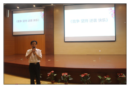 见面会在全场合唱一首热烈欢快的《青春修炼手册》中开场,系主任潘上永老师首先用特别温馨的方式欢迎了来自五湖四海的学子们——他分别以12个不同省份、标出了每一位同学家乡具体位置的地图为背景和同学们合影留念。潘老师还为大家作了主题为《竞争 坚持 逆袭 快乐》的演讲,他用生动的例子鼓励大家在学习上要努力拼搏、在生活中要保持良好心态,最后希望大家能够“健康生活、享受快乐”;系副主任张会莉老师希望大家抓住大学三年的时光多读书、多积累;系党总支副书记朱颖老师表示愿意成为同学们的知心姐姐、为大家排忧解难。其他老师也一一为同学们送上寄语。