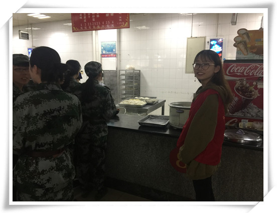 维持队伍秩序,提醒同学们文明就餐