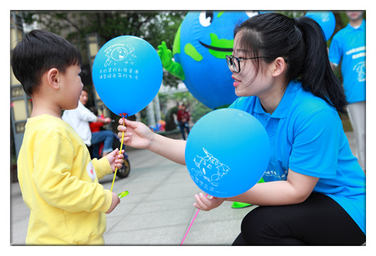 今年我国确定的地球日活动主题是:“节约集约利用资源,倡导绿色简约生活——讲好我们的地球故事”。财务会计系为此准备了1200只气球,在短短1个多小时内全部派发完毕,该系后续还将继续组织环保志愿服务、“五水共治”活动,为保护环境、呵护地球献出自己的一份力。