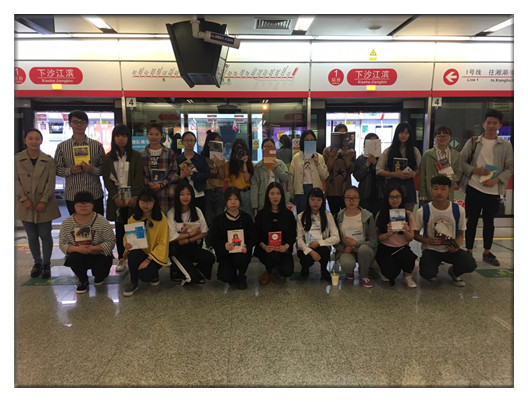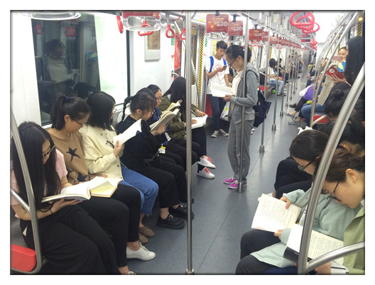 读书日当天,财务会计系创业团队S²工作室在地铁站开展了“今天,我不是一个人在读书”为主题的全民阅读推广活动。此次活动由创业导师金莎莎老师和团队负责人胡佳楠同学带队,活动特邀赵鑫雨同学担任小采访员,对地铁上乘客进行关于阅读和读书日看法的采访。同学们还通过在地铁中阅读书本的行为方式,向周围人倡导阅读当回归纸质文本、阅读可利用碎片时间的风尚,以此传递在这个“速食时代”,放下手机静下心、利用时间,也能看一篇好文、读一本好书的理念。