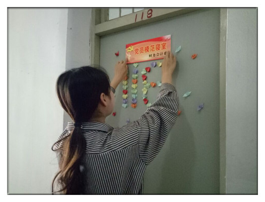 2017年4月27日中午,财务会计系举行党建文化周活动之“党员模范寝室”授牌仪式,系辅导员许菁老师、严晓莉老师、部分党员、入党积极分子参加了此次活动。