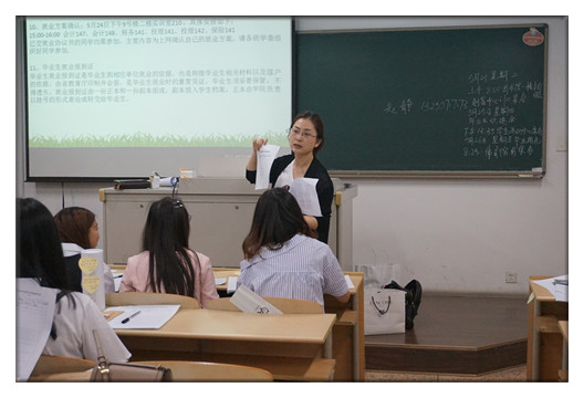 在班会过程中,我系党总支副书记朱颖老师、系辅导员高云涛老师也来到教室对毕业生填写资料进行指导。