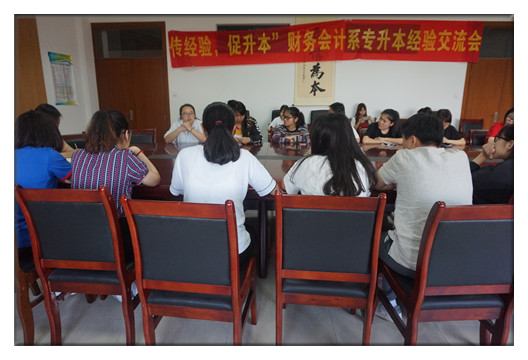5月25日,财务会计系就业创业部在图书馆8楼系会议室开展了专升本交流会,活动由我系辅导员许菁老师主持,大一、大二20多位有专升本意向的同学参加。