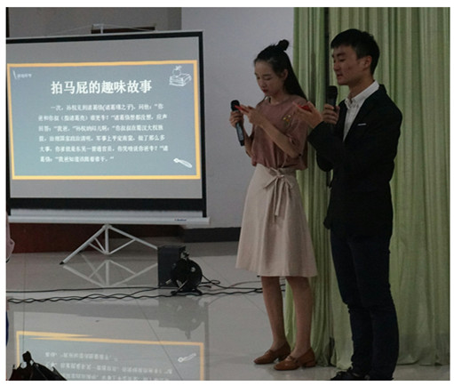 此次情商剧场的主题是《沉睡效应——“拍马屁”》。故事说的是办公室里下属经常对上司“拍马屁”,而后一名职员通过拍马屁升上了经理职位,但公司却因为用人不善而每况愈下。剧情在此戛然而止,随后主持人询问观众对“拍马屁”的看法和生活中的相关经历,并让大家对剧情的结局展开猜测。通过充分的讨论,大家对“拍马屁”这个行为有了一定的认识,从心理学知识的角度看,这件事听上去虽然不那么体面,但却是建立职场沟通渠道的有效方式之一,它有时也是一种非常有效的心理激励技巧。此外,活动还穿插了相声、趣味故事和游戏,让同学们参与其中。