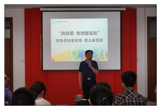财务会计系历来重视学生干部的培养,“学生干部培训班”也已开班多年,每年都有校内外实践、志愿服务、讲座交流等20多项丰富多彩的活动。为进一步落实全国、全省高校思政会议精神,2017年4月18日,该系领跑者俱乐部在系党员之家正式启动,系主任潘上永教授做了“向前看,方知路遥远”的开班讲座。