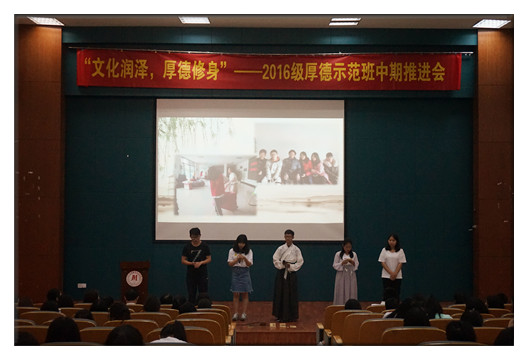 6月13日下午,财务会计系在图书馆报告厅举行“文化润泽·修身厚德”2016级厚德示范班中期推进会,全体系领导、班主任、辅导员及2016级厚德示范班全体同学出席会议。