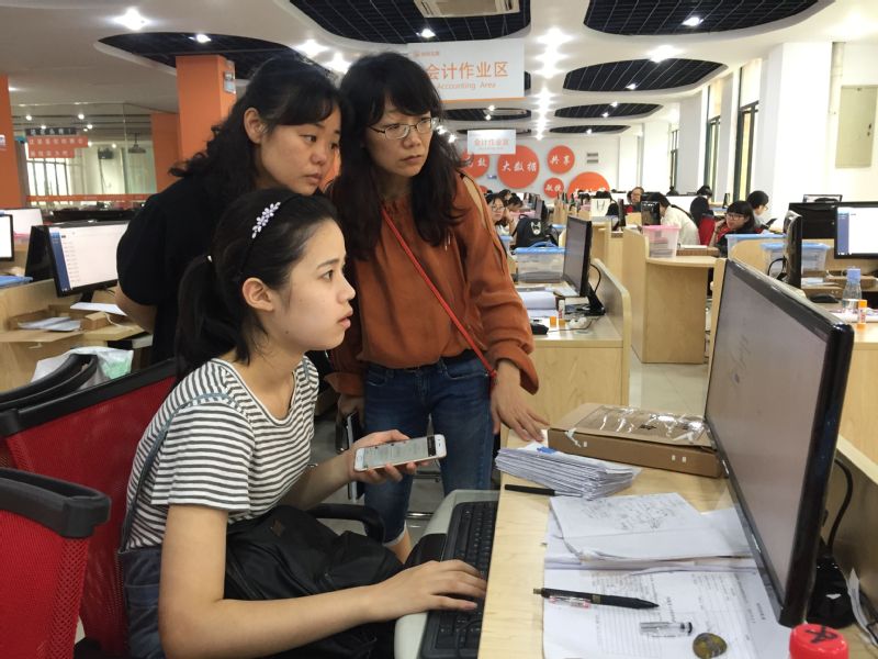 本系共安排全部2015级会计专业学生300余人进入中心实习,首批入驻中心的“金财互联(002530)”5家杭州子公司深度融入学生的实习,实行学徒制,每位企业骨干员工带9位学生,28位企业指导老师,培训和指导学生完成企业真实账务的处理和纳税申报。