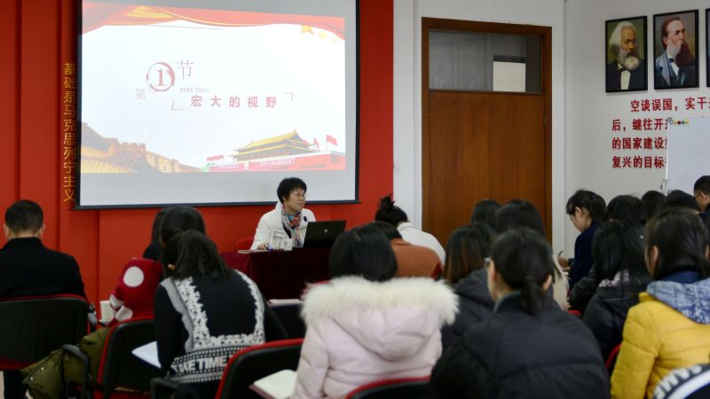 蒋丽君结合学院实际和切身体会,帮助财会系师生党员更好地学习领会十九大精神,她在党课中指出,要“学深、悟透、践行”党的十九大精神,就要明确党的初心和使命,要从“宏大的视野”、“宏伟的战略”和“宏远的目标”三个方面把握十九大报告的整体框架。她分享了自己梳理的十点体会,令人耳目一新、深受启发。最后,她对在座党员师生提出了三点希望:一是希望同志们能将十九大报告内容融入课堂;二是希望能将十九大精神的学习落实在学校十三五规划、优质校建设和学院年度考核工作上;三是希望全体党员师生能将十九大精神转化为完成学院发展目标任务、加强党组织和党员干部自身建设的强大动力。