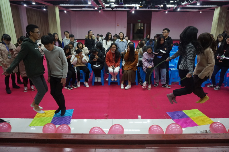 在“指压板跳绳”中,大家在被指压板压得嗷嗷大叫时共跳一绳。比赛过程中,大家通力合作、默契十足,精彩的表演也引得在场观众连连叫好。