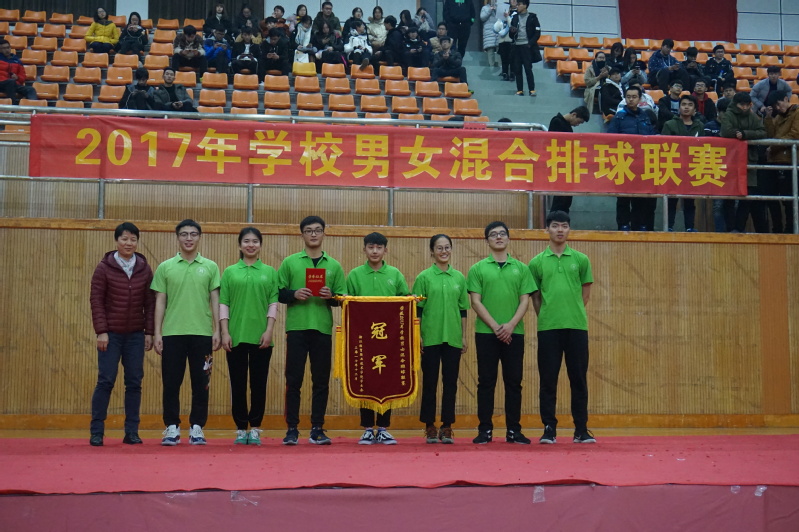 2017年12月27日晚,财务会计系排球队在我校2017年男女混合排球联赛中勇夺冠军。