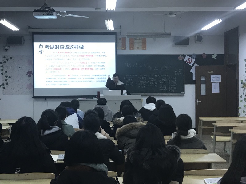 2018年1月3日晚,财务会计系以“诚信考试”为主题在2017各班级开展特色晚自习活动。