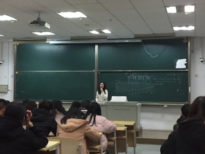 2018年1月2日晚,财务会计系合唱团全体成员在1号楼101教室开始了本年度正式训练。本次训练课程,大家主要在专业老师的带领下学习基本乐理知识,内容包括如何识别并演奏节拍、如何正确演唱音符、如何辨别一首曲子的调子等,成员们全程认真听讲并尝试练习。