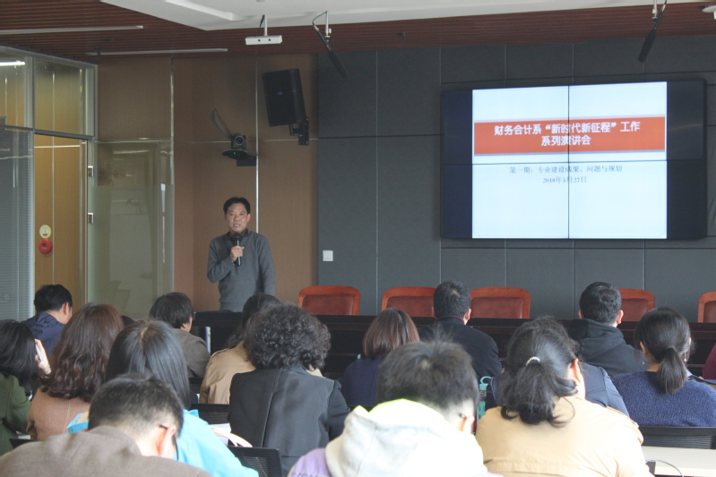 为适应新时代发展,勇敢踏上新征程,财务会计系于3月14日下午在学校教师发展中心开启了“新时代新征程”工作系列演讲会第一讲,财会系全体教师出席了活动。