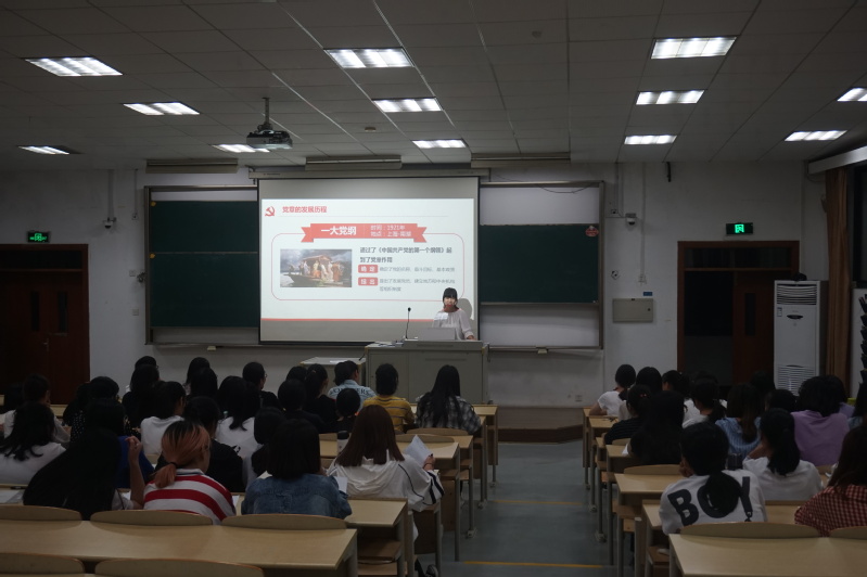 课上,吕丽丽以“认真学习党章,做合格党员”为主题,介绍了中国共产党的入党流程、党章以及相关的理论知识;鲍丽婷从十九大出发,以报告中的关键词为切入点,引导同学们深入学习理论、贯彻十九大精神;而沈元胤是为同学们仔细介绍了从推优至成为合格党员的党员发展流程,使同学们胸中有目标、心中有计划。